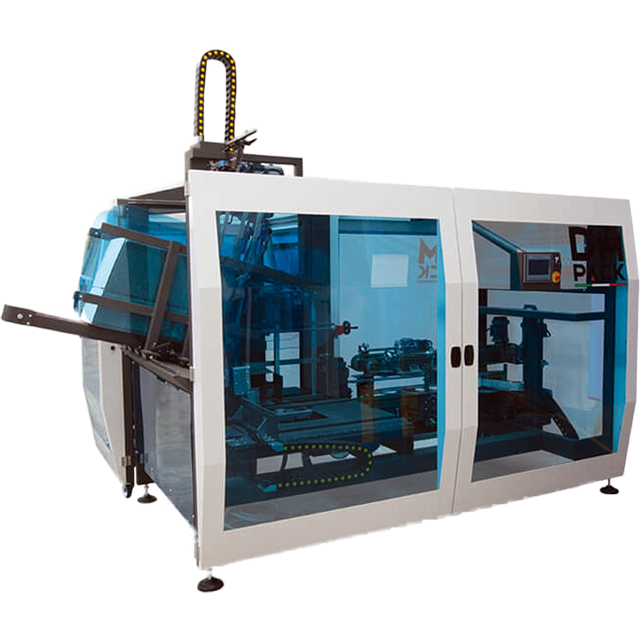 • Διάταξη αυτόματης διαμόρφωσης χαρτοκιβωτίου με αυτόματο σύστημα πλήρωσης και σφράγισης.